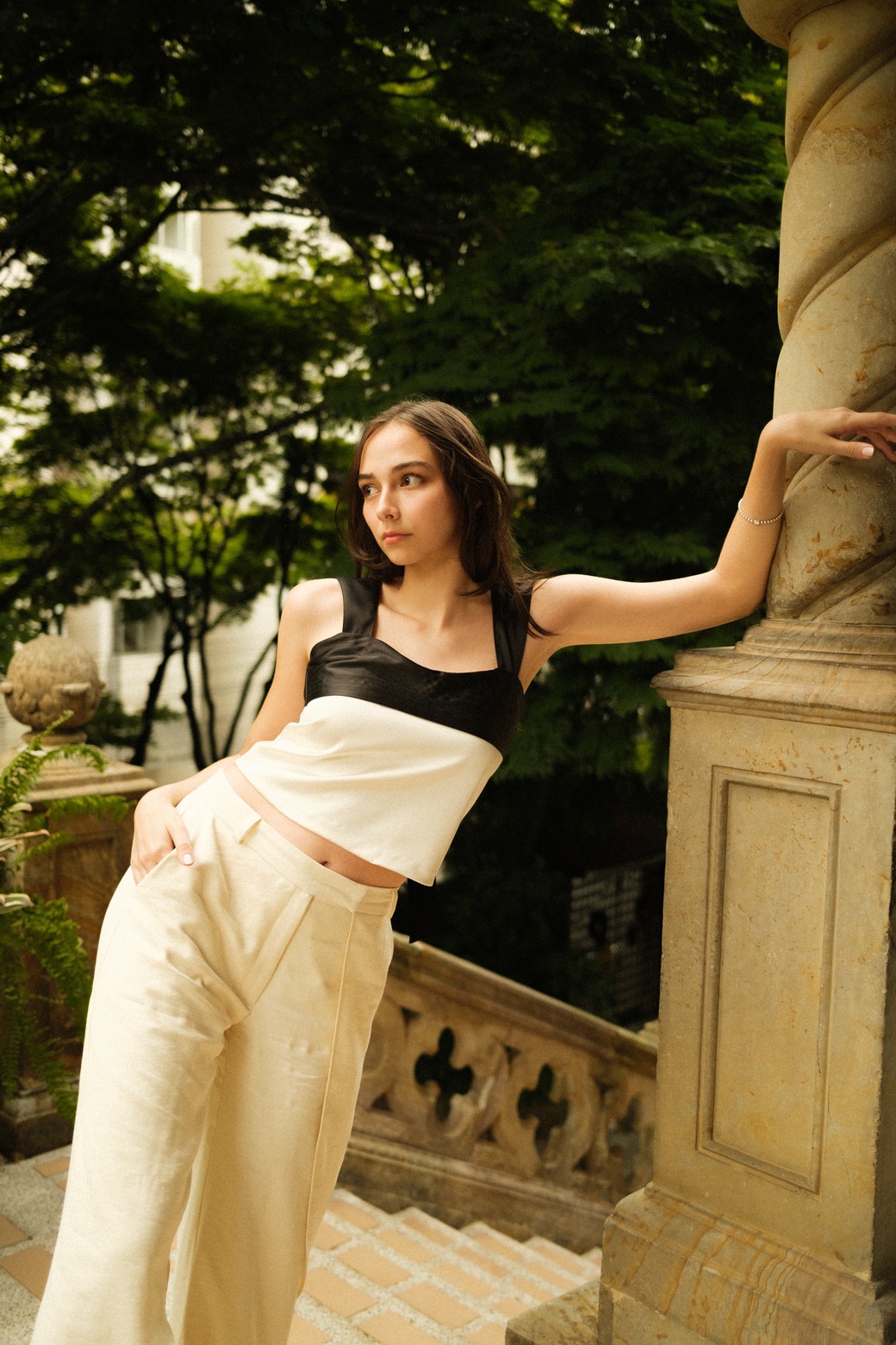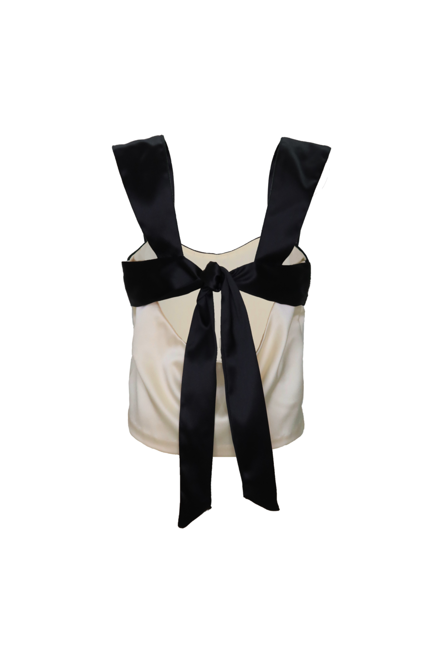 Sophisticated sleeveless top with wide satin straps, two-tone colorblock design and a back adjustable knot.