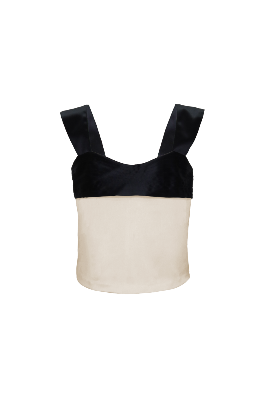 Sophisticated sleeveless top with wide satin straps and a two-tone colorblock design.